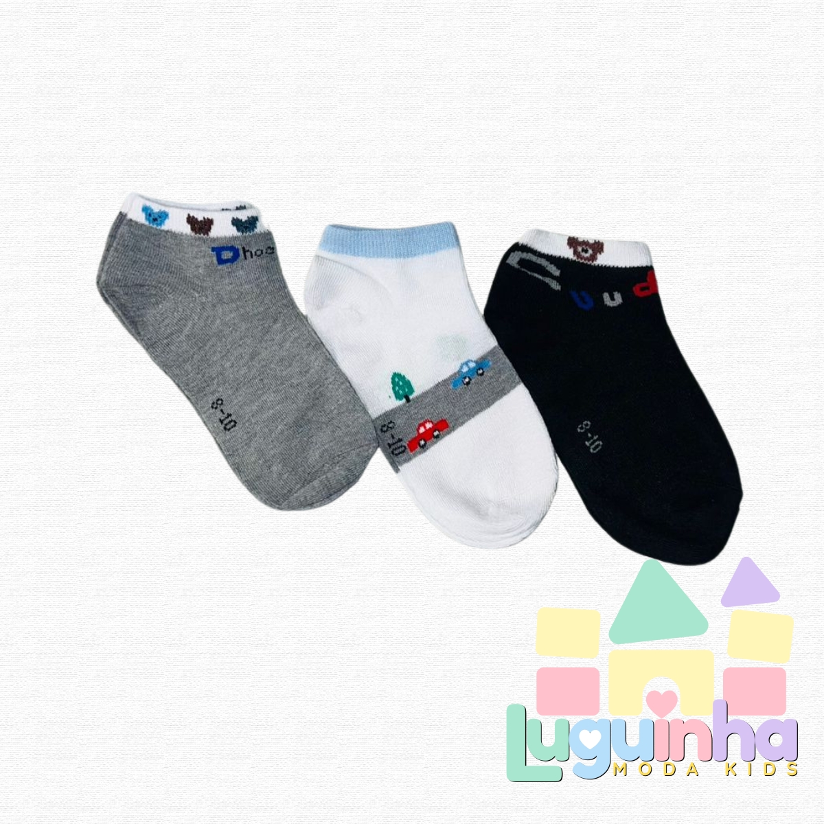 👧 Kit com 3 meias infantis – Meninos de 8 a 10 anos