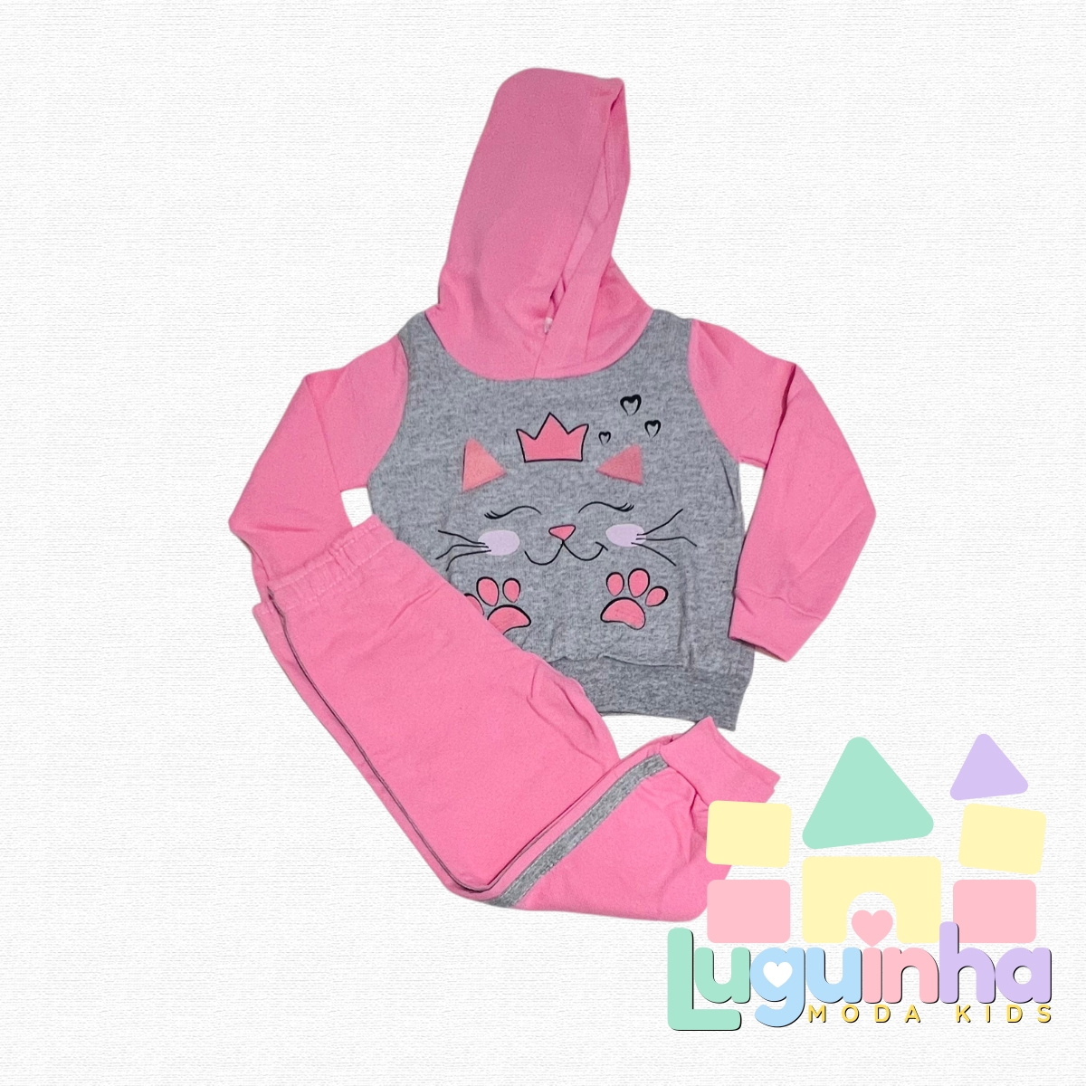 Transforme os dias frios em momentos de diversão com o Conjunto Gatinha Flanelado! Feito em tecido quentinho e super macio, ele traz o charme das orelhinhas interativas que fazem a alegria da criançada. ☁️✨